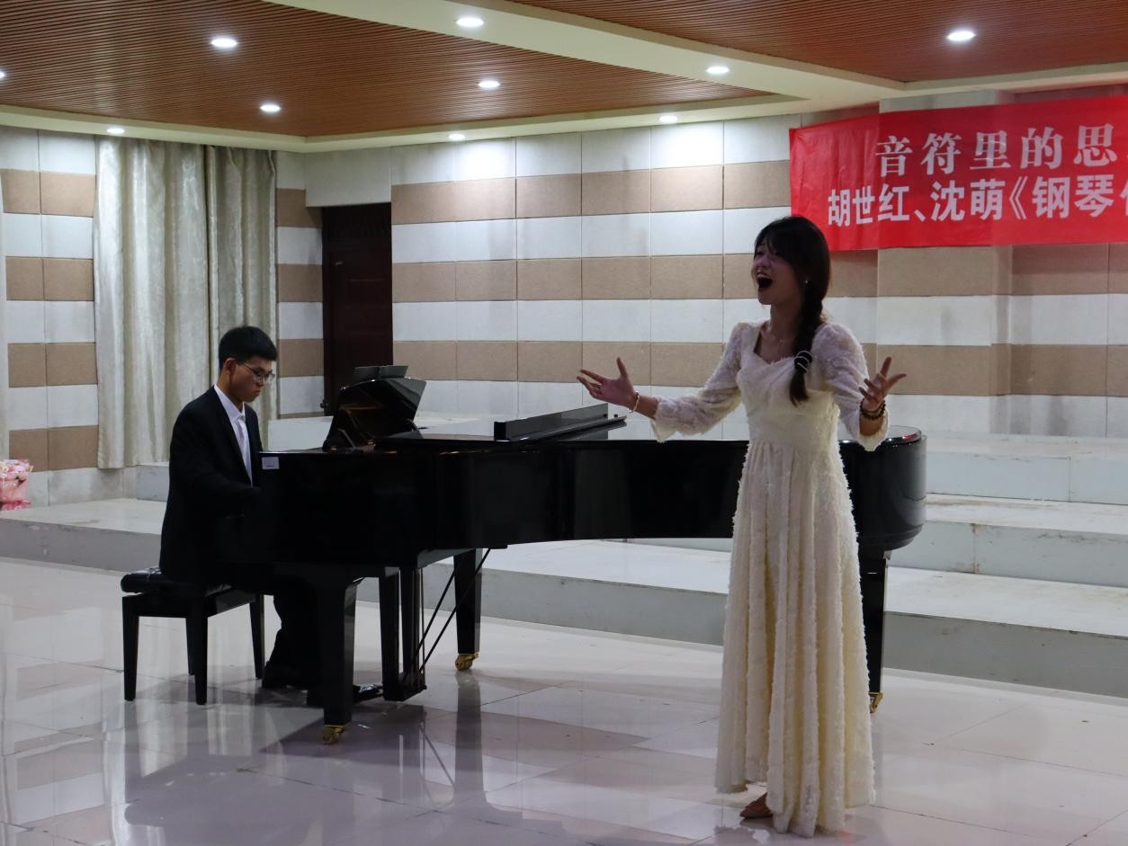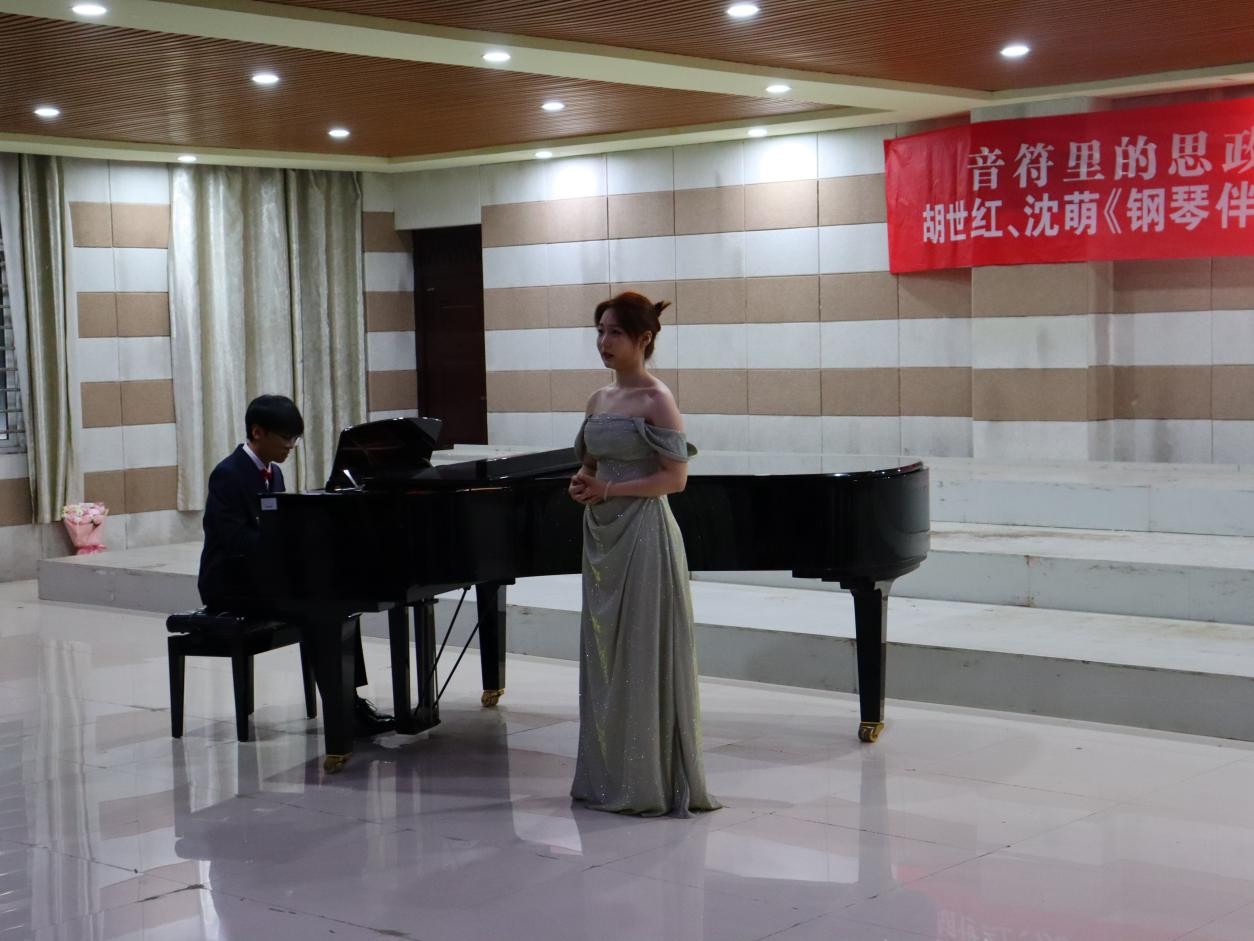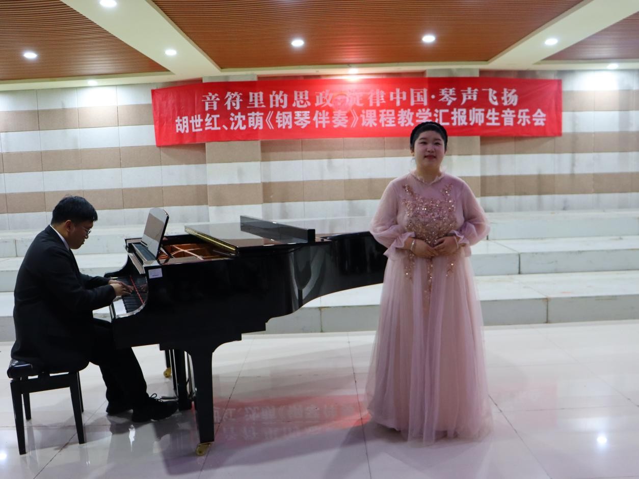 5月14日晚,太阳集团tyc138”音符里的思政”之“旋律中国·琴声飞扬”胡世红、沈萌《钢琴伴奏》教学汇报师生音乐会在艺术楼201成功举行。本次音乐会精选了《天边有颗闪亮的星》《祖国,慈祥的母亲》《我爱你,中国》等十余首脍炙人口的经典歌曲,用钢琴伴奏和歌声来表达对党和祖国的忠诚、热爱、感激、崇敬之情。