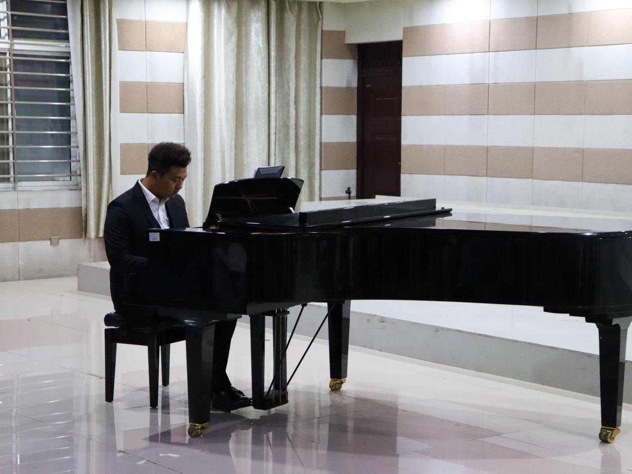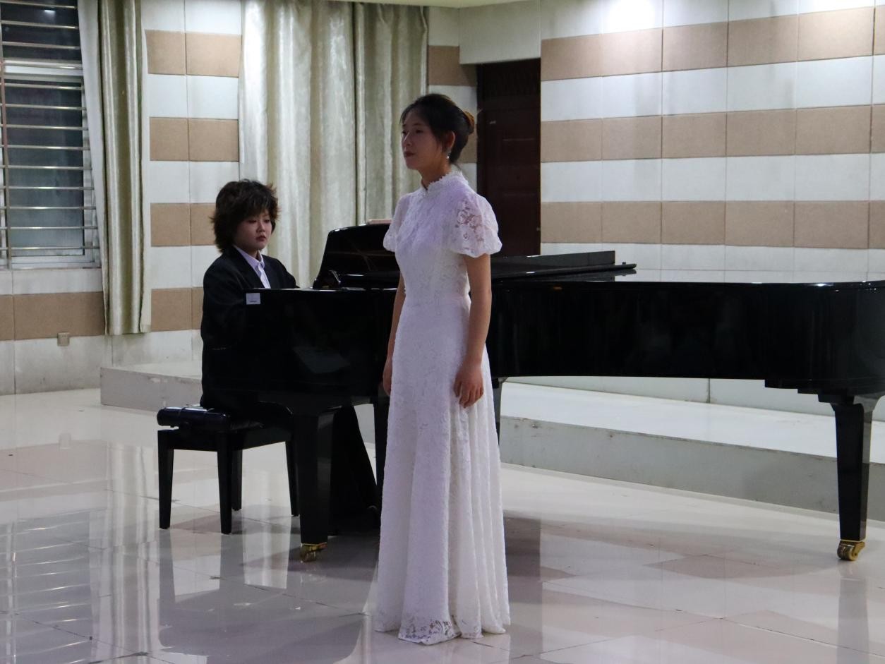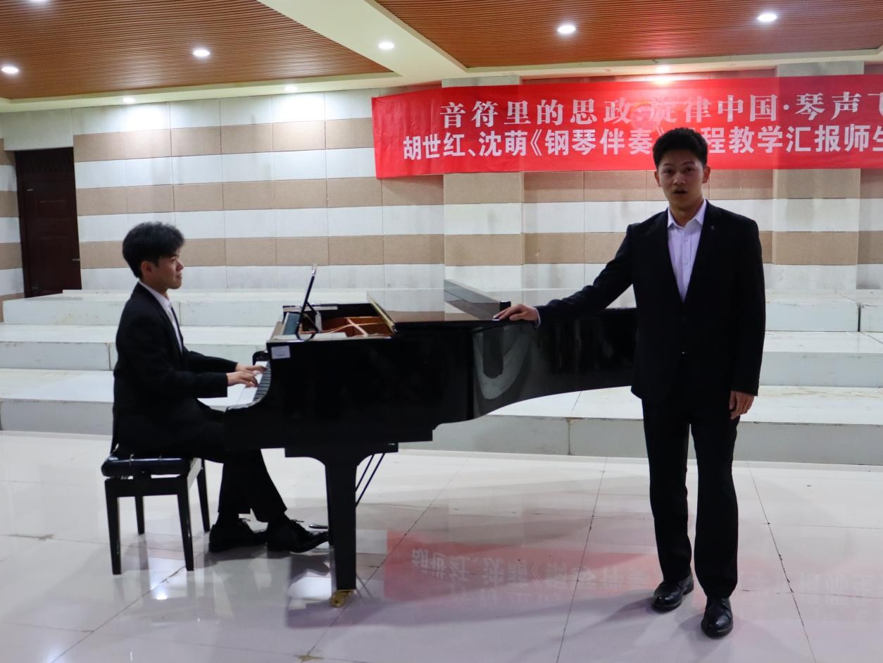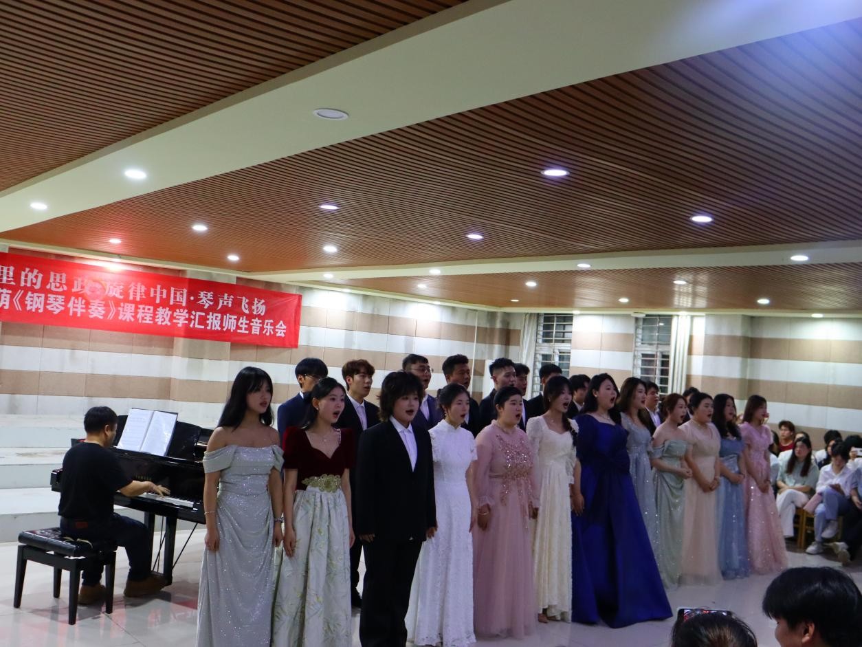 5月14日晚,太阳集团tyc138”音符里的思政”之“旋律中国·琴声飞扬”胡世红、沈萌《钢琴伴奏》教学汇报师生音乐会在艺术楼201成功举行。本次音乐会精选了《天边有颗闪亮的星》《祖国,慈祥的母亲》《我爱你,中国》等十余首脍炙人口的经典歌曲,用钢琴伴奏和歌声来表达对党和祖国的忠诚、热爱、感激、崇敬之情。