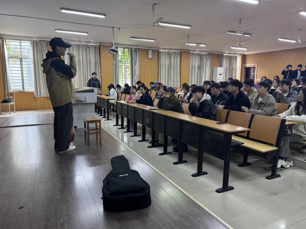 随后,纯真吉他社的成员从基础乐理知识入手,结合简单乐器演示,用通俗易懂的语言分享了自己对于音乐节奏把控、音准识别等关键技巧,耐心解答了同学们提出的问题。
