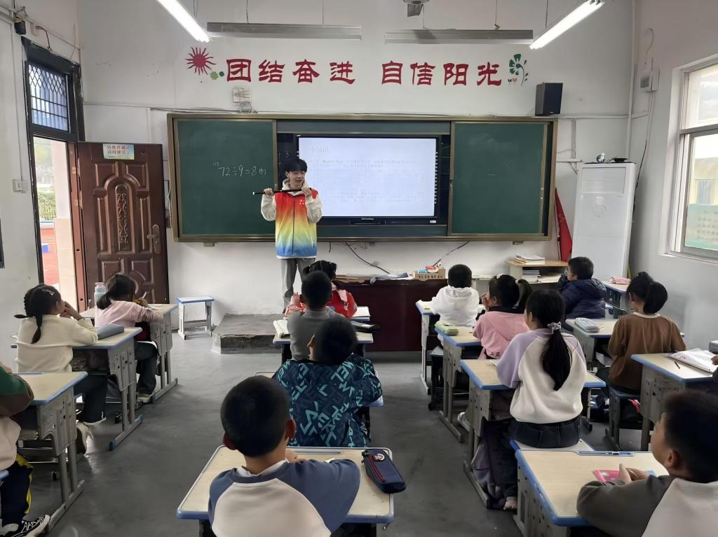 本次授课对象为二、四、六三个年级。二年级的授课内容为《萱草花》,这首传统的儿童歌谣简单轻快的旋律通过竹笛的演奏,让同学们感受传统乐器的魅力。四年级学习的《歌唱祖国》,通过欢快的节奏,让孩子们联想到欢快的音乐氛围,和深厚的爱国情怀。六年级的授课内容为《灯火里的中国》,通过钢琴一句一句地教孩子们唱歌,传递积极向上的信息,表达了对祖国的热爱和向往。