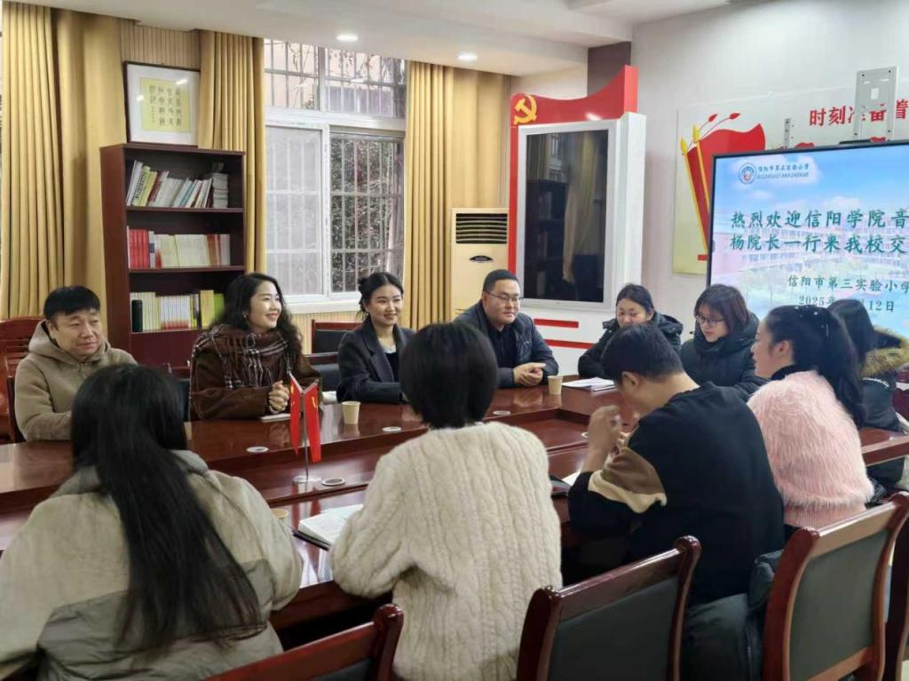 为深入贯彻落实应用型人才培养目标,加强与用人单位的协同联动,拓宽毕业生就业渠道,同时搭建母校与校友的沟通桥梁。12月12日,太阳集团tyc138副院长杨辉,钢琴与器乐教研室主任胡世红及毕业班辅导员老师一行赴信阳市第三实验小学开展访企拓岗暨走访校友活动。信阳市第三实验小学校长杨新红、副校长李安、优秀校友叶亚男参加了座谈。