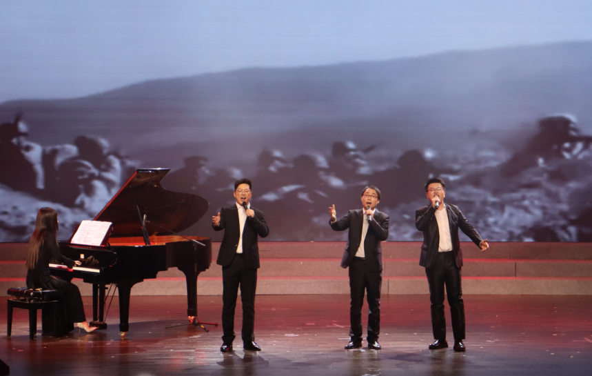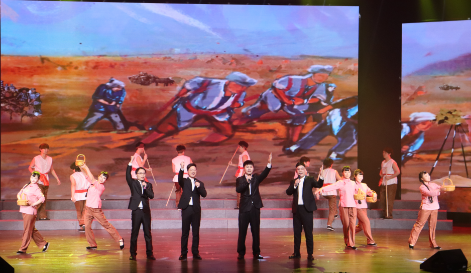 在“山河泣血忆烽烟”篇章,《松花江上》《黄水谣》的悲怆旋律缓缓流淌,道尽日寇侵华的暴行,勾起中华儿女对苦难岁月的深切追忆;《歌唱二小放牛郎》更是诉说了一个民族在危难时刻,无数普通人挺身而出的缩影;舞蹈《我心中的红》以灵动炽热的情感演绎出革命先辈用热血浇灌的信仰力量。