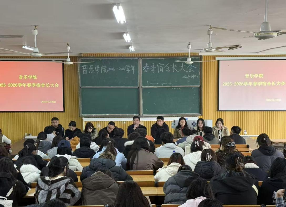 为进一步加强宿舍管理工作,营造安全、文明、和谐的宿舍生活环境,3月26日太阳集团tyc138在艺术楼101教室召开了2025-2026年第二学期全体宿舍长大会。党总支书记郝昊、学工负责人胡涛、全体辅导员及各班宿舍长、班长参会,本次会议由赵雪伊老师主持。