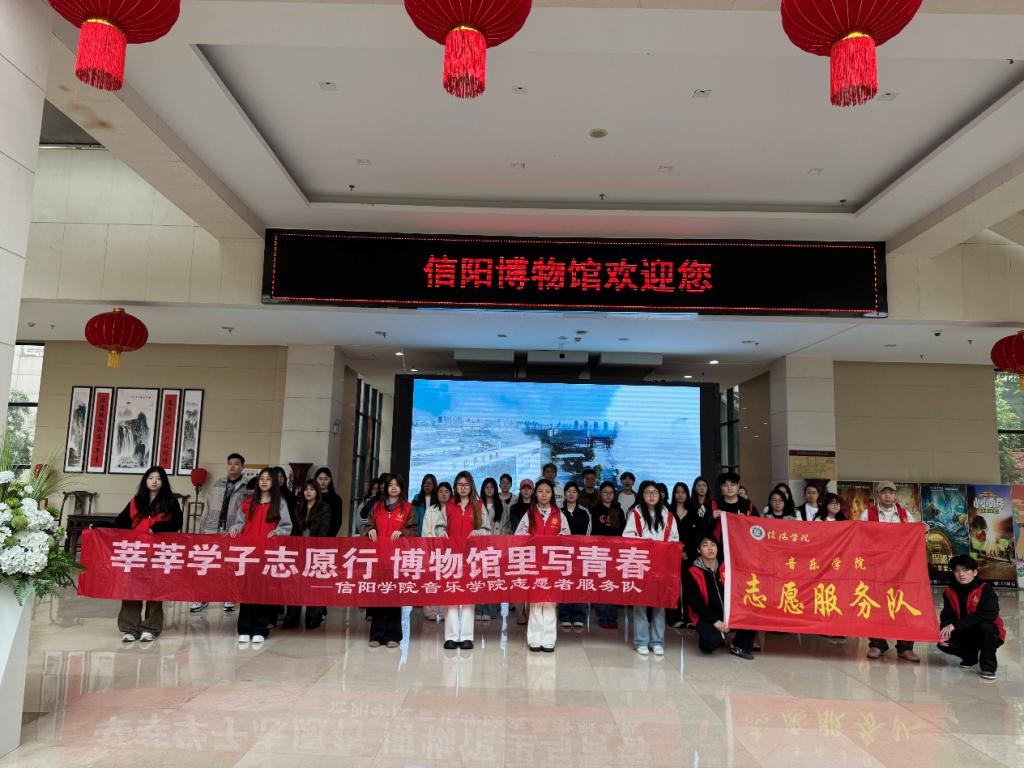 在信阳市博物馆开展志愿服务,是学院系列志愿活动中的重要组成部分,学院历来高度重社会实践服务,一方面结合专业特点深入地方学校、场馆等开展艺术展演,另一方面按照学校统一安排,前往校地合作项目基地分批次开展系列服务活动,活动不仅在服务社会的过程中促进青年学子综合能力提升,同时也为合作单位增加了一抹青春色彩。