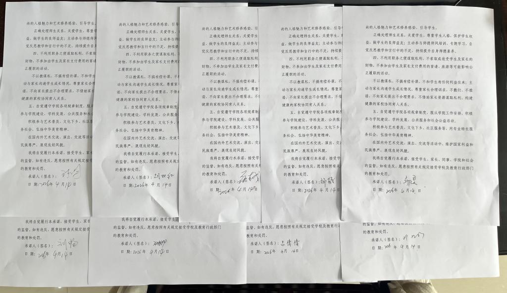 为进一步强化责任落实,固化学习成果,会上还组织全体教职工签署了《太阳集团tyc138师德师风个人承诺书》。承诺书明确了教职工在师德师风方面的具体责任与行为准则,既是对师德规范的再次重申,也是教职工对自身职业行为的庄严承诺。