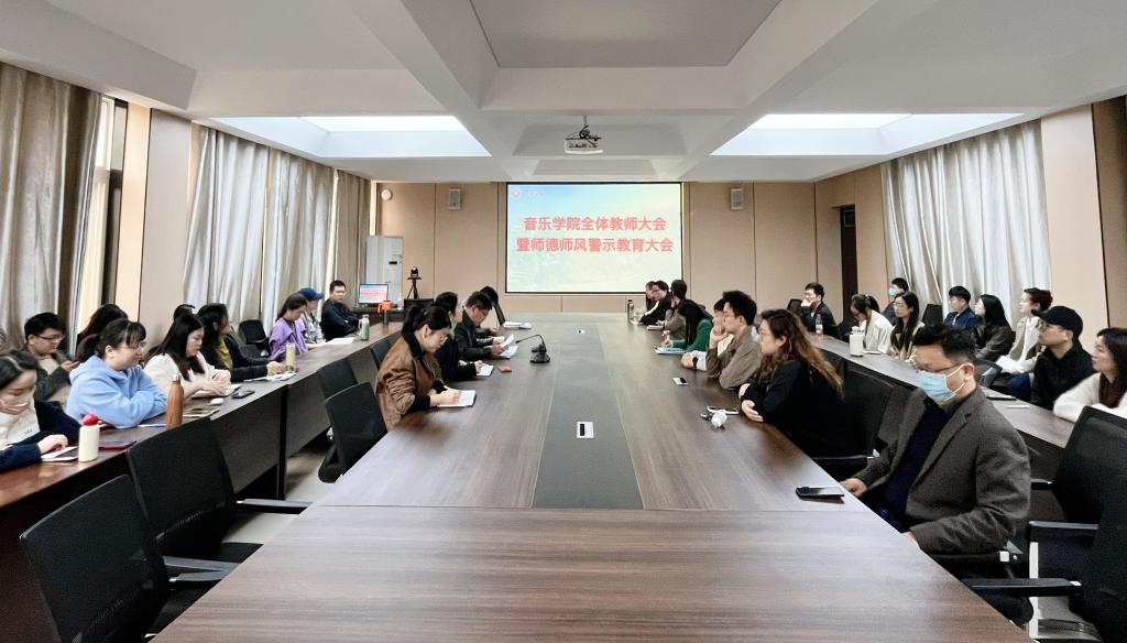 郝昊首先传达了关于开展《河南省教育系统师德失范问题治理应知应会手册》(以下简称《应知应会手册》)专题学习的通知,明确了专题学习的具体要求与推进安排,强调要以《应知应会手册》为指引,常态化开展师德师风教育,筑牢教师职业行为防线。随后,郝昊带领全体教师开展《应知应会手册》专题学习,重点解读了手册中师德建设职责任务、师德失范行为界定、失范问题处理规范等核心内容,结合教育系统内近期发生的师德失范典型案例,深入剖析了案例中违规违纪行为的发生根源、造成的不良社会影响及对学生、学校、行业带来的严重危害,深刻阐释了开展师德失范问题治理的重要性、紧迫性和必要性,传递了“零容忍”对待师德失范行为的鲜明态度。学习过程中,郝昊结合太阳集团tyc138教学工作特点,强调音乐教育工作者既要坚守艺术初心,更要恪守师德底线,要将师德规范与专业教学、艺术传承、学生培养紧密结合,引导全体教师深刻领会手册精神,明确行为边界,摒弃侥幸心理,增强师德师风建设的思想自觉与行动自觉,切实将师德规范内化于心、外化于行,做到学高为师、身正为范,以高尚的道德情操和严谨的治学态度,当好学生健康成长的引路人。