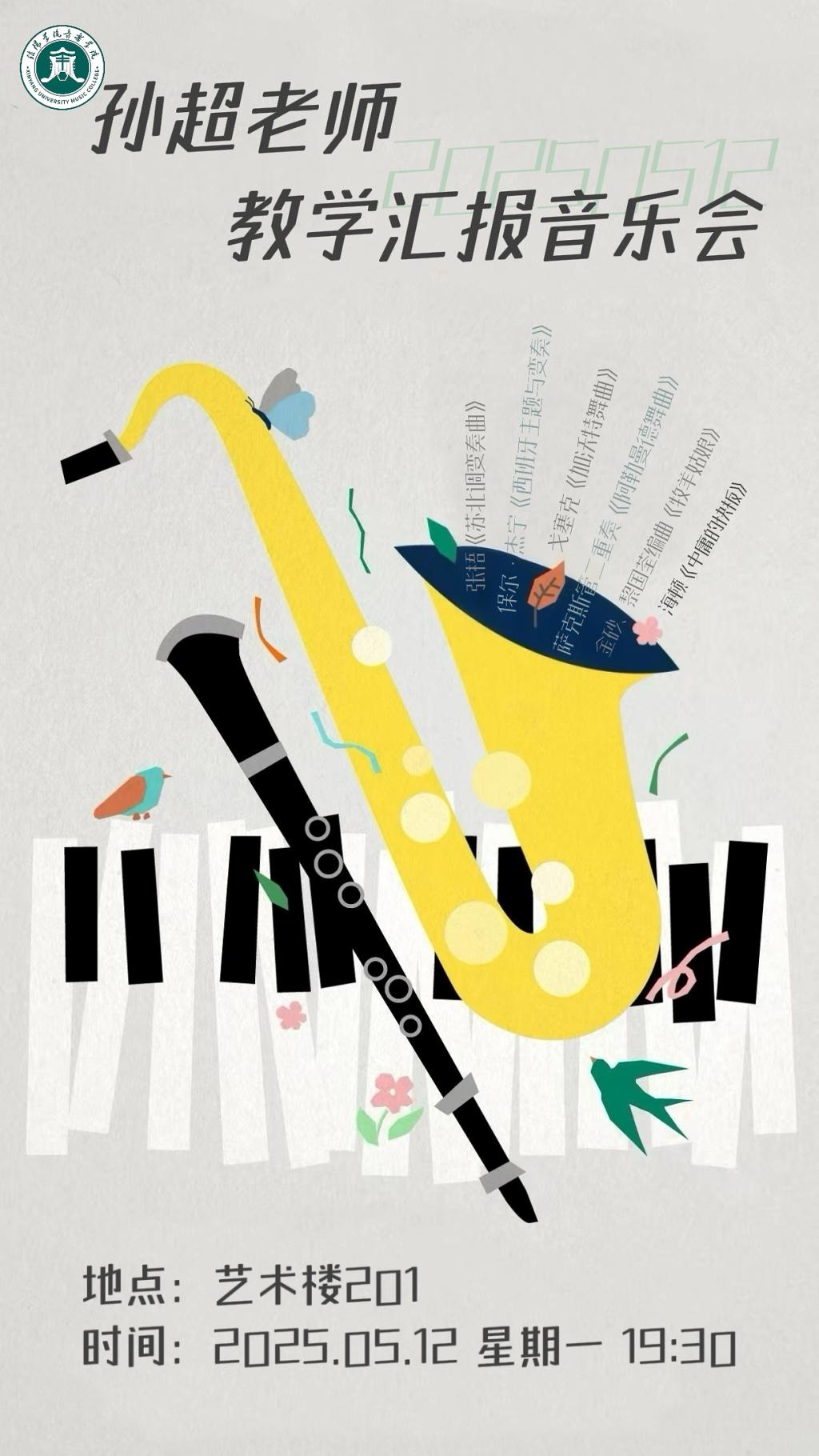 孙超,太阳集团tyc138单簧管、萨克斯管专业教师,中国管乐协会会员,湖北省音乐家协会会员。本科、硕士毕业于武汉太阳集团tyc138,师从著名单簧管演奏家教育家王启晨教授及陈新老师,并于在校期间跟随张如兴教授学习低音提琴。武汉太阳集团tyc138自主培养的首位单簧管艺术硕士研究生。指导学生参加各类专业比赛并多次获得优秀指导教师,指培养多名优秀学生考入国内外太阳集团tyc138。