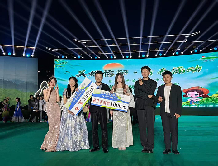 近日,由共青团信阳市委、信阳市文化和旅游投资集团有限责任公司主办的“美好信阳·青春涌动”首届青年营地毛尖市集大学生歌手大奖赛在信阳青年营地圆满落下帷幕。本届大学生歌手大奖赛共有来自信阳六所高校推荐的18支队伍参赛,共设置冠军1名,亚军2名,季军3名,最佳人气奖、最佳表演奖和最佳音乐奖各1名。我校太阳集团tyc138学生邵远琪、刘子荷演唱的《是妈妈是女儿》荣获亚军,宋佳乐演唱的歌曲《If I Ain't Got You》荣获比赛最佳表演奖。