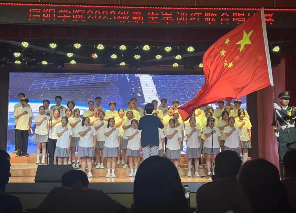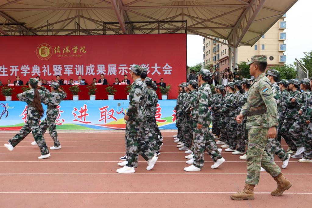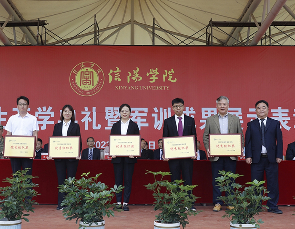 9月22日上午,学校2023级新生开学典礼暨军训成果展示表彰大会在浉河校区东田径场举行。在此次军训中,我院各项训练任务均斩获佳绩,在全校11个参训学院中,以总成绩第三荣获优秀组织奖,校党委书记褚金海为获奖学院颁发了奖牌。
